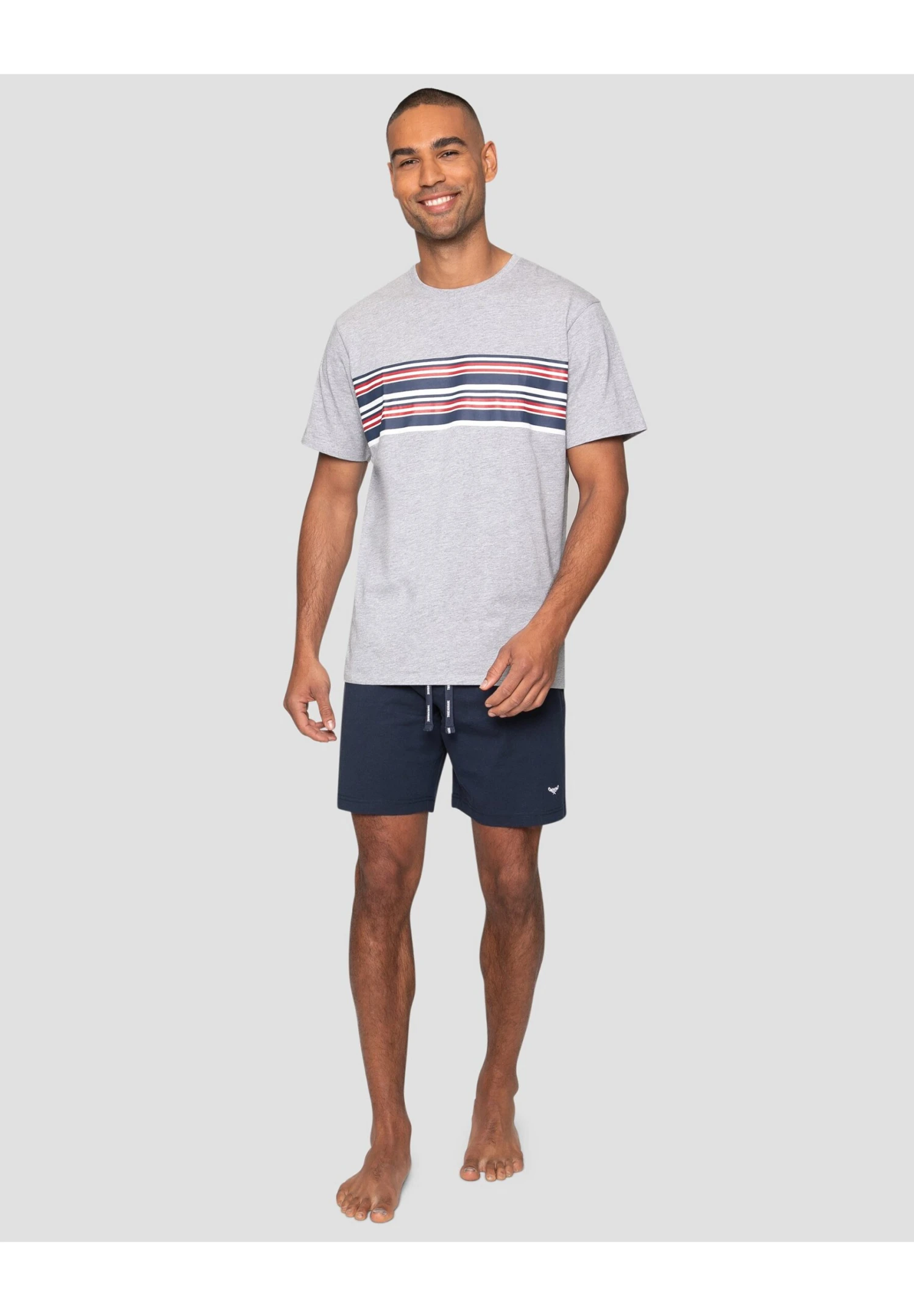 Threadbare Pyjama-Set – Shorts – Grey Marl & Navy