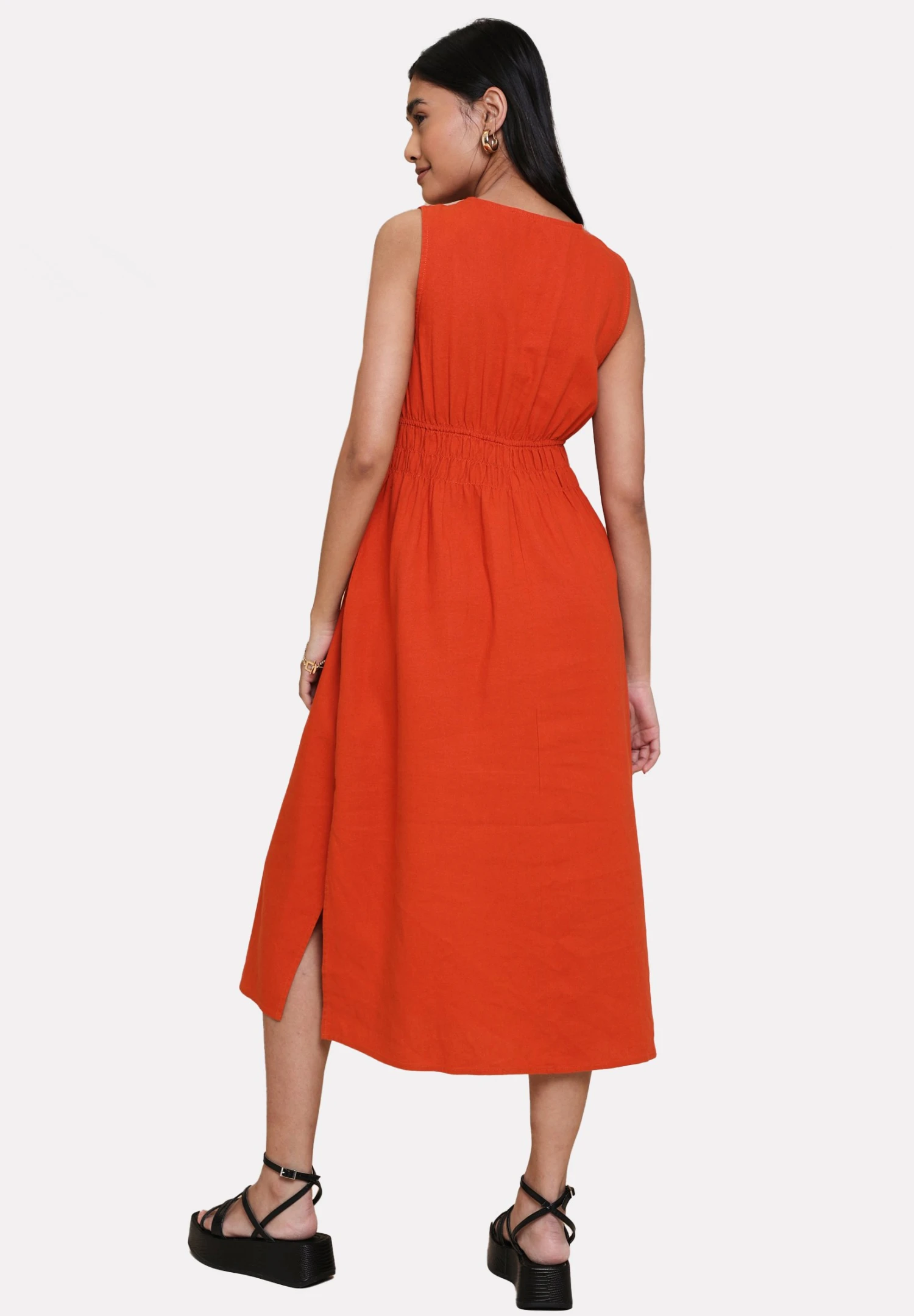 Threadbare Thb Peppercorn Waisted Midi – Jurk – Orange